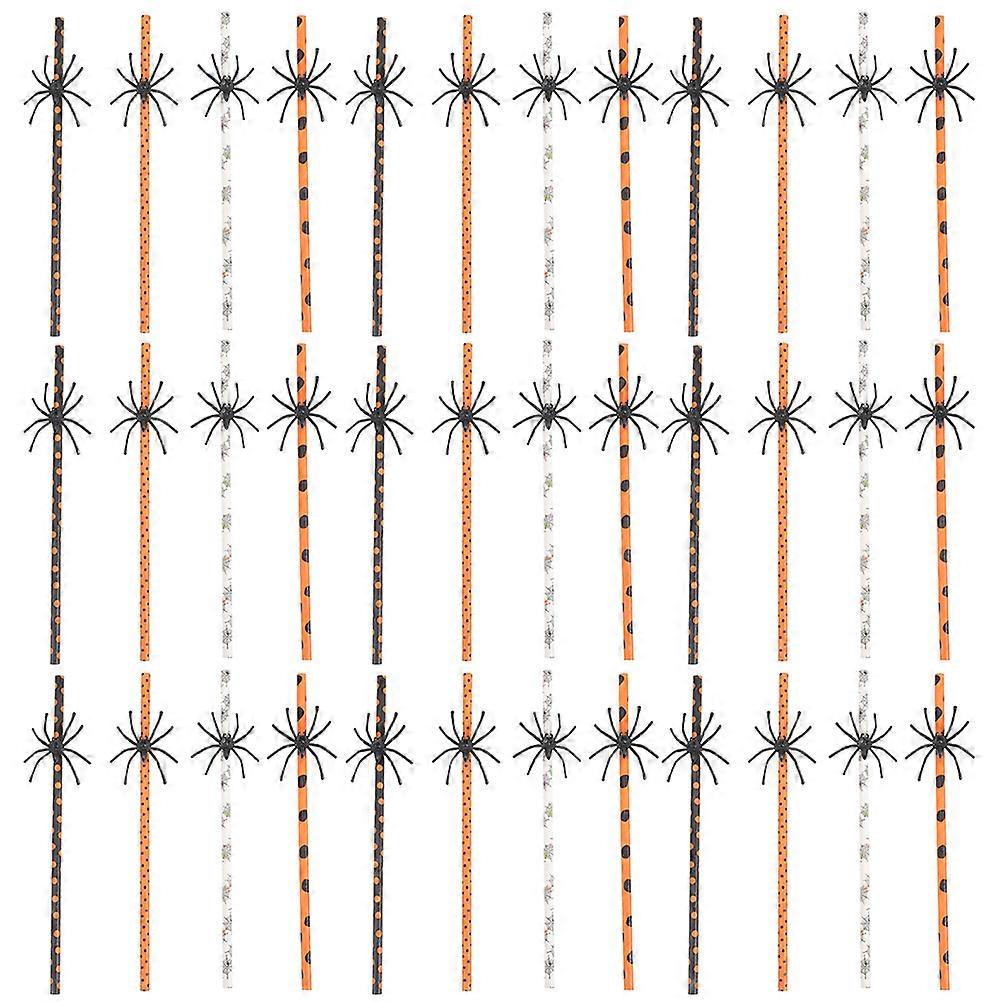 Spider Shape Halloween Paper Straws Black Drink Straw Home Decoration Cake Decor All Ages 40Pcs