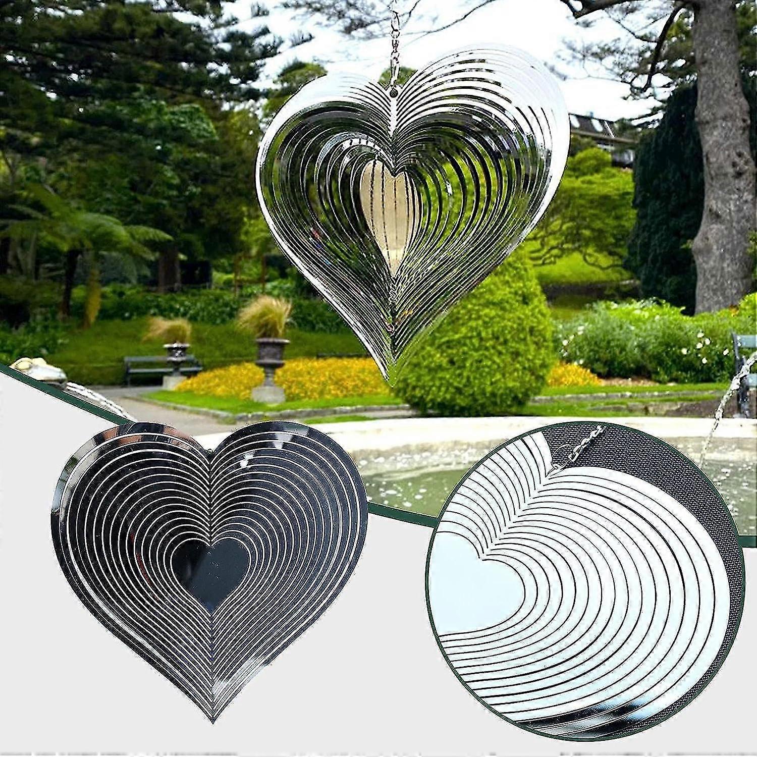 Spiral Heart Wind Chime 360 Degrees Spinners Hanging Sign Tree Pendant Suncatcher Metal Garden Ornament Decor For Outdoor Indoor Home Bedroom Living R