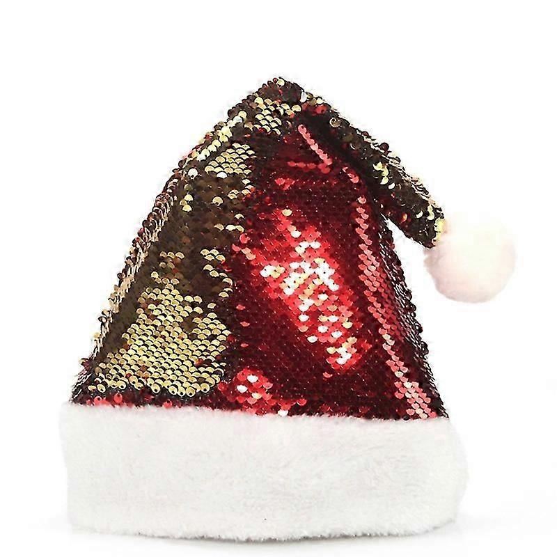 Sequins Santa Hat Xmas Holiday Hat with White Plush Trim Fancy Dress Party