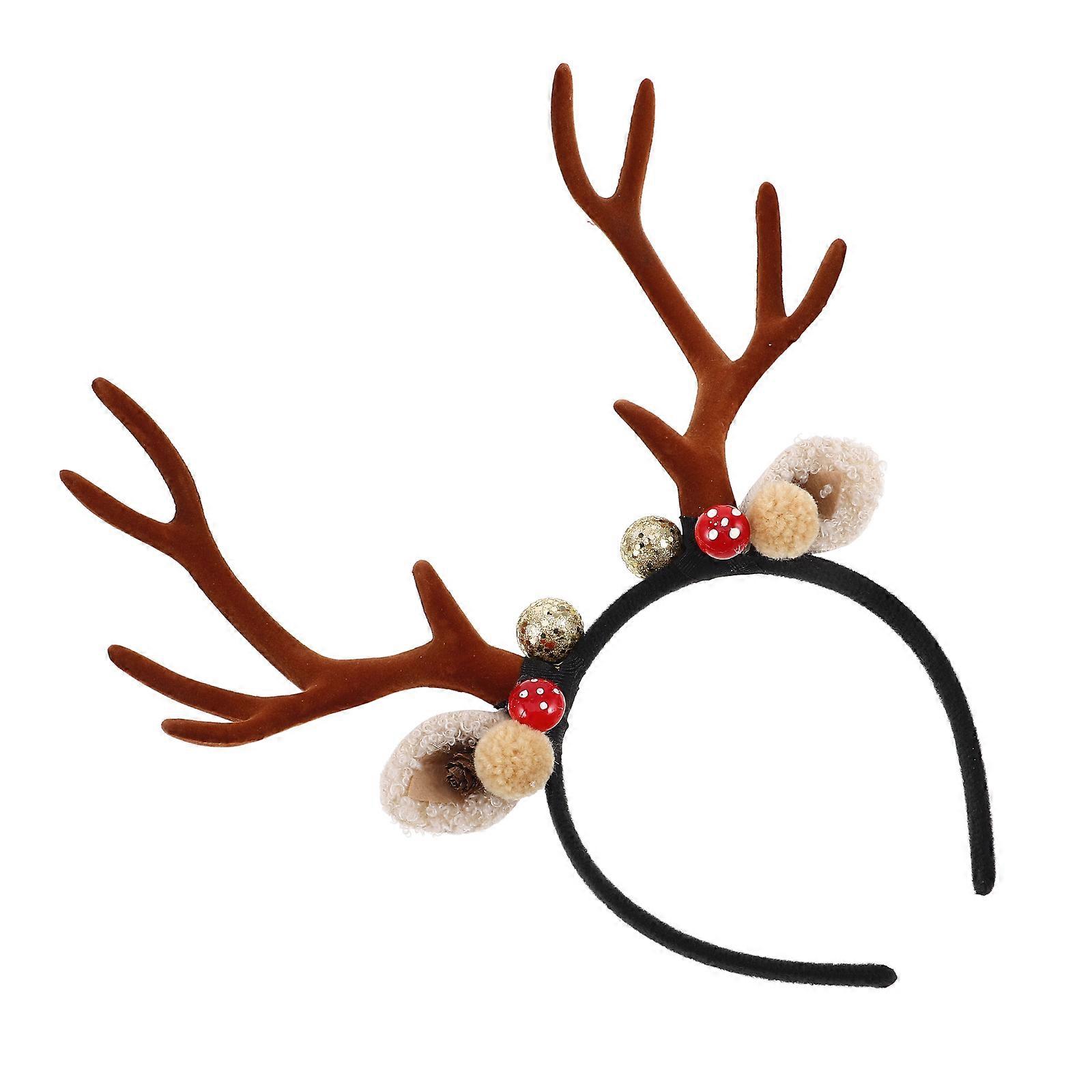 Realistic Reindeer Antler Headband with Sequined Balls and Pine Cone Charms – Sturdy Christmas Costume Accessory for Adults, Festive Party Headwear