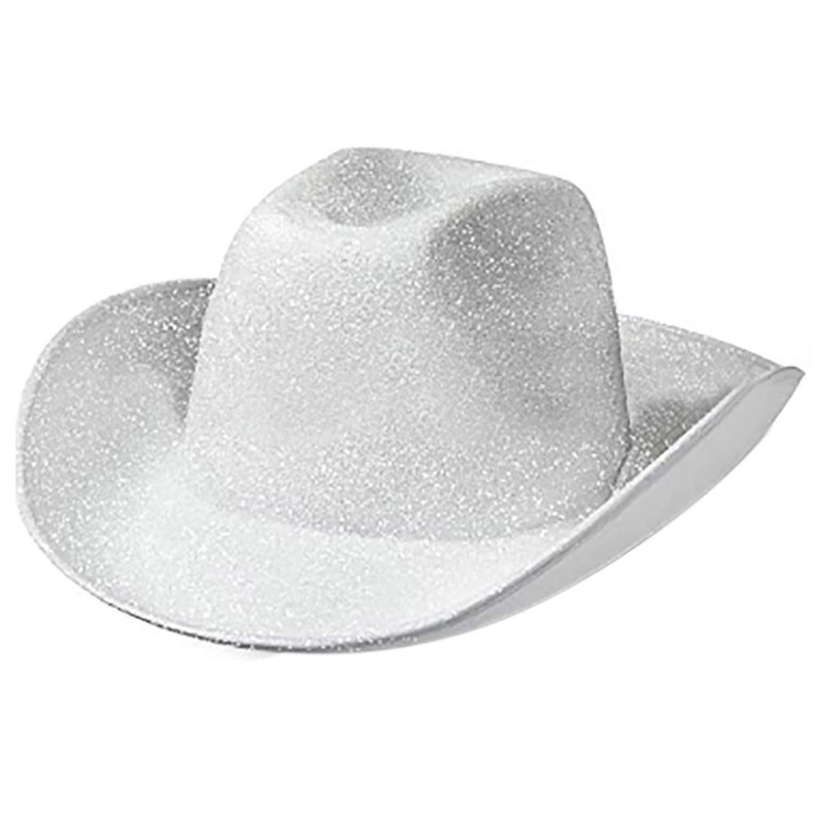 Cowboy Hat with Sequins Surface Glitter Rave Cowgirl Hat 58cm/23" Cap Circumference Fit for Men and Women White