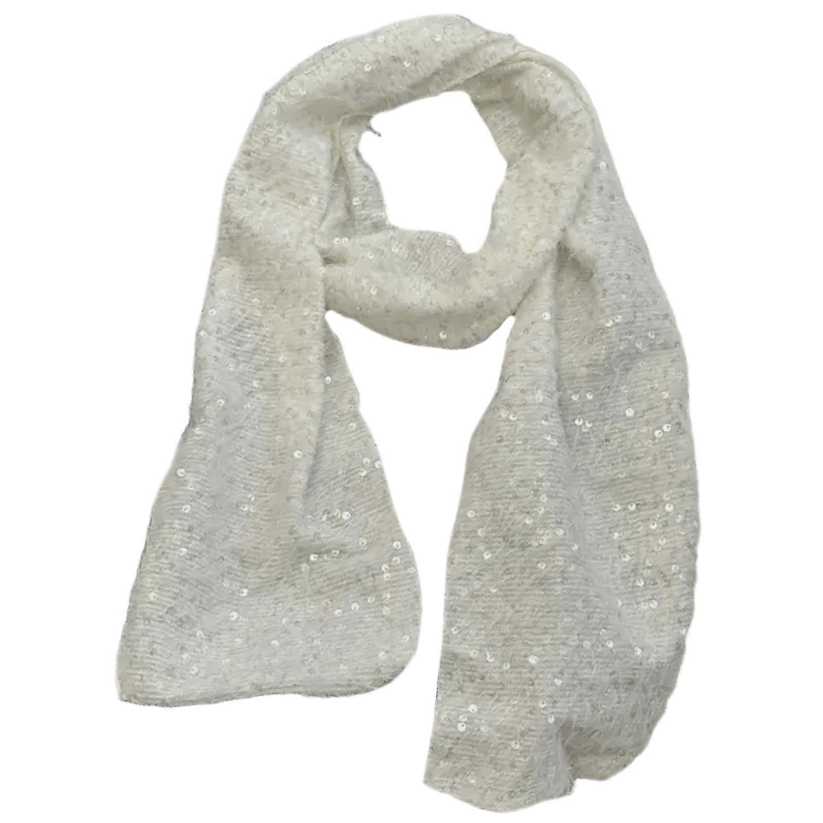 Sequins Embellishment Neckerchief Unisex Warm Scarves Autumn Winter Long Scarf for Fashion Females White