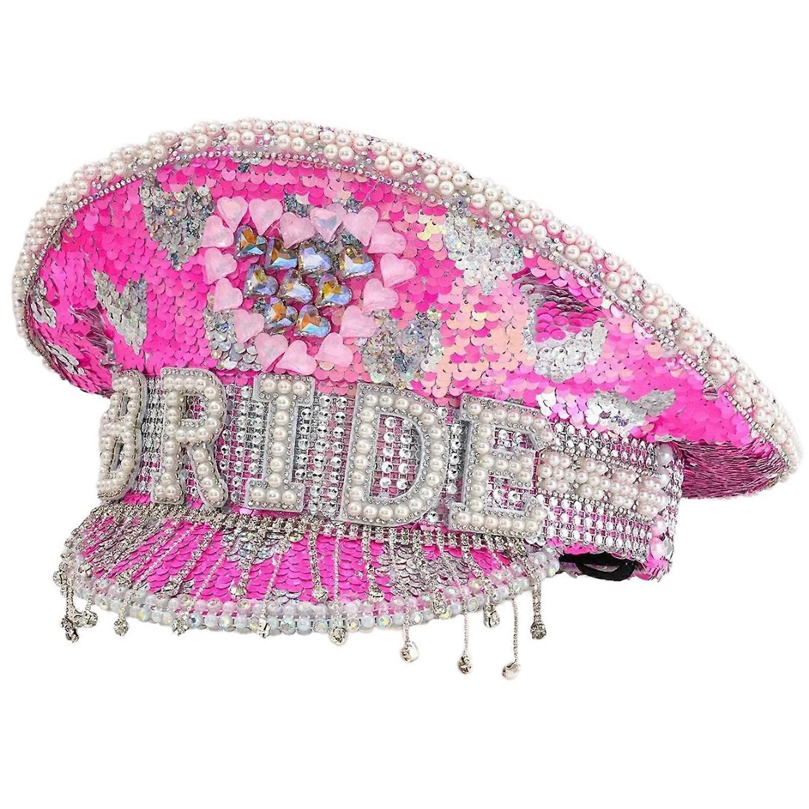 Sparkling Captain Hat Heavy Crystal Sequins Rivets Hat for Bachelorette Party Captain Hat Bride Hat for Actor Actress Pink
