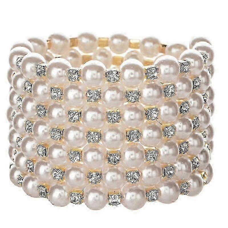 Sparkling Diamonds Pearl Elastic Bracelet-7 Rows Art Deco Bridal Jewelry