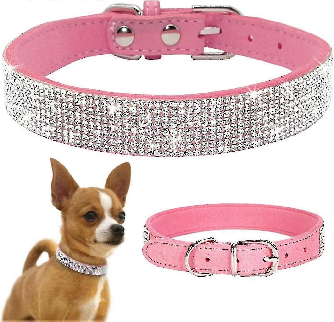 Sparkling Rhinestone Pet Collar - Glitter Cat & Dog Collar, Soft Leather (XS Pink)