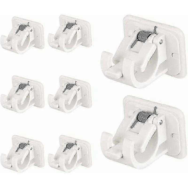 Self Adhesive Curtain Rod Holder Brackets with Spring Buckle - 8 Pieces No Drill Rod Holders for Home and Bathroom