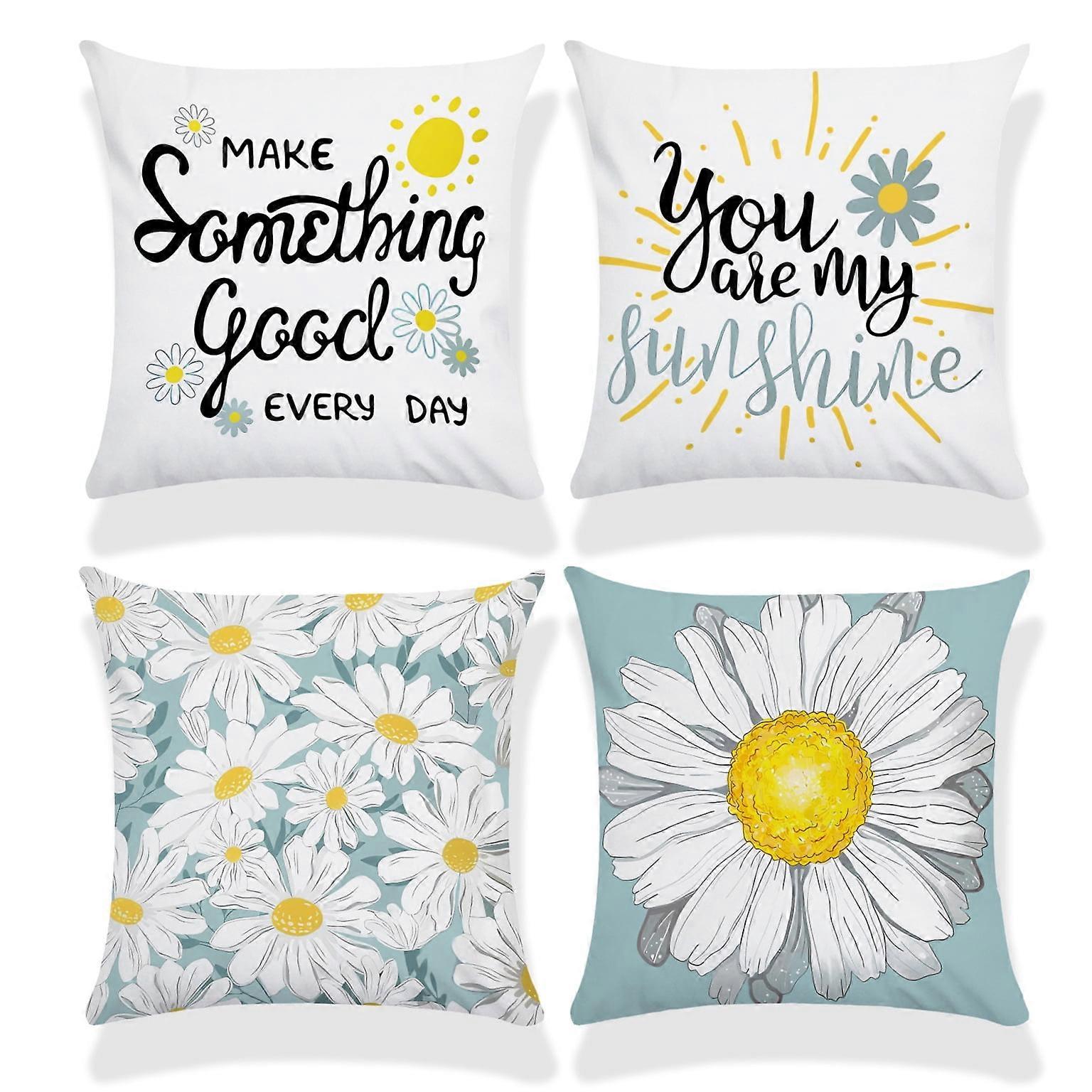 Spring Pillow Covers 18x18, White Daisy Floral Cushion Covers for Home Decor Compatible with Couch Sofa Indoor Outdoor Use