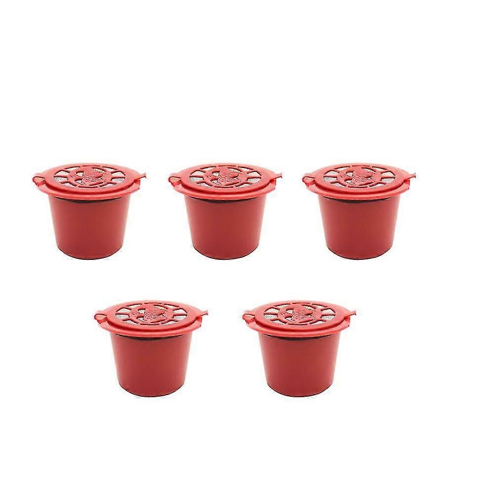 5pcs Reusable For Coffee Capsules Cup With Spoon Brush Refillable Coffee Capsule Refilling Filter -red