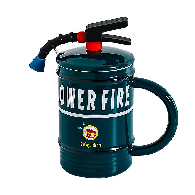 Creative Funny Fire Extinguisher Mug With Spoon, Coffee Cup With Handle Cover, Dustproof Ceramic 450 Ml Coffee Cup, Oatmeal Tea Cup, Christmas Gift