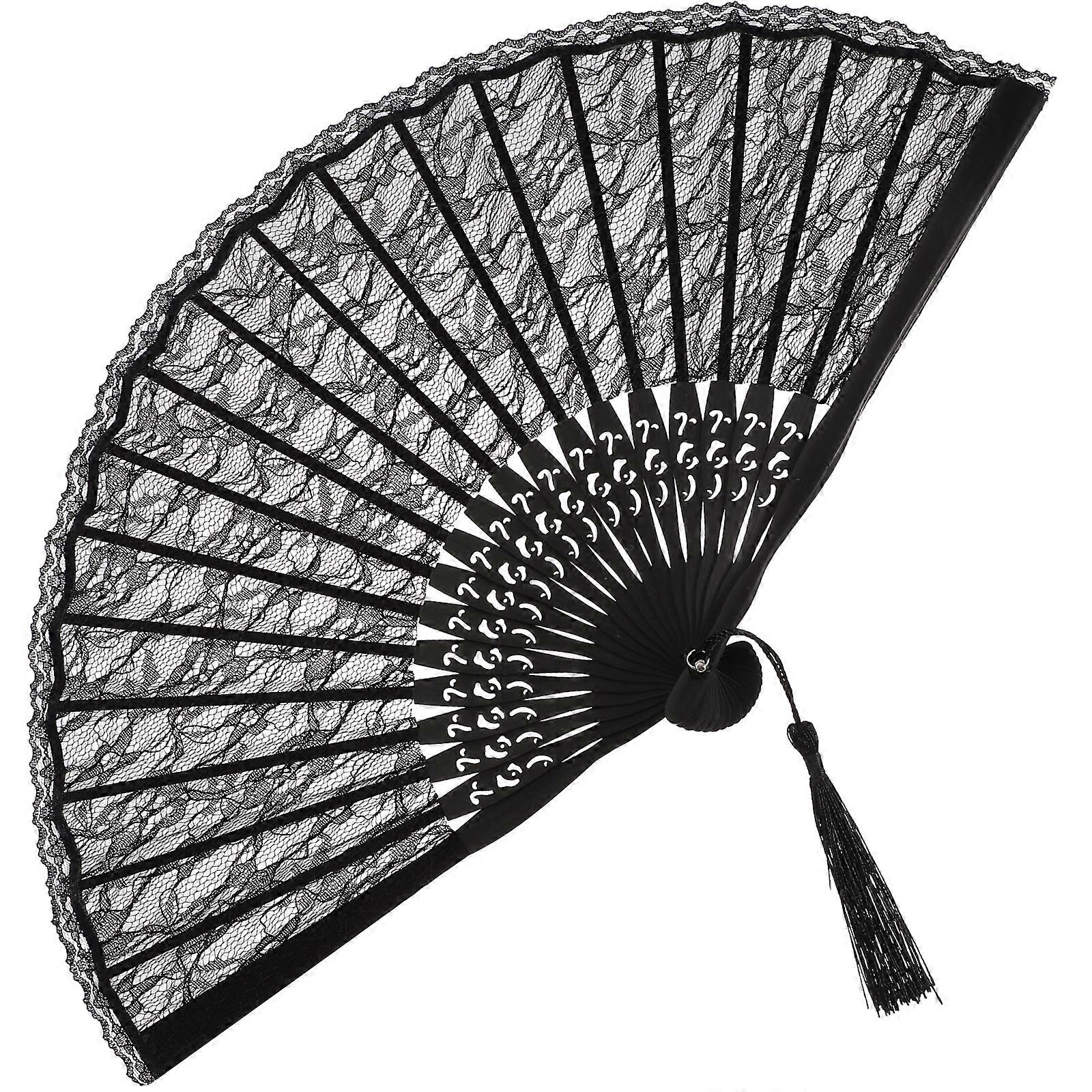 Spanish Victorian Hand Fan for Wedding Party Favor Fancy Dress (Black)