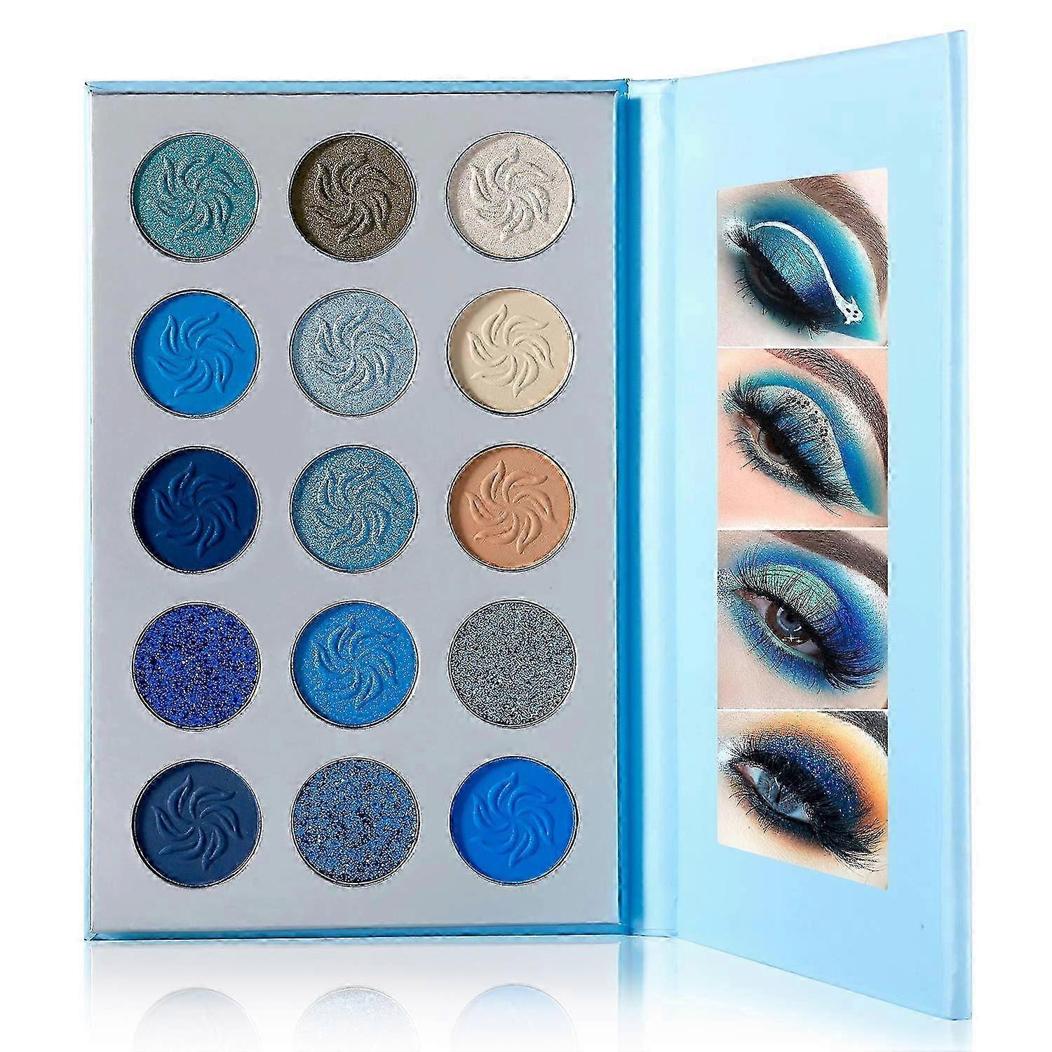 Space Blue Eyeshadow Palette, 15 Glitter Eyeshadow Pressed Pigment Christmas Snowflake Matte Shimmer Drama Makeup Blue Eyeshadow, Durable Waterproof
