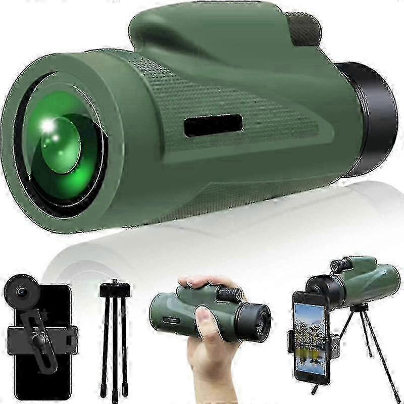 page.12x50 Monocular Telescope: Monoculars have a 12x full magnification and an objective diameter of 50 mm, and the maximum field of view is up to 1000 meters. The multi-layer coated BAK4 prism FMC lens improves light transmission, ensures good light transmission and brightness, and makes your field of view clearer and brighter.High Resolution: The BAK4 prism uses a high refractive index to eliminate stray light and improve color rendering to 99.99%. The green FMC anti-reflective coating reduces the reflected light in the objective lens and improves the light transmission, image brightness and image sharpness. It is very suitable for indoor soccer games, concerts and other dark occasions.Ergonomic design: Telescope monocular covered with rubber, shockproof, non-slip, comfortable and durable, so you can easily hold it outdoors. The 20mm eyepiece allows nearsighted people to use it without removing their glasses.Waterproof monocular: The optical element of the star mirror monocular has the function of waterproof and anti-fogging. The lens is equipped with a dust cover to prevent dust and squeezing of the lens, and can keep the lens clean even when used outdoors.Applicable to multiple scenarios: You can put the rifle scope in your backpack and hang it on your body. It is very suitable for outdoor hiking, camping, tourism, mountaineering, bird watching, soccer games, concert performances so that you can see the distant landscape clearly. Suitable for most smartphones. Note: Due to the light and screen setting difference, the item's color may be slightly different from the pictures. Please allow slight dimension difference due to different manual measurement. Sold by-Dadangjia