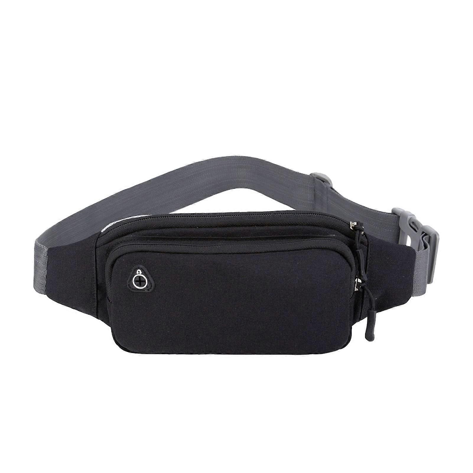 Sport Waist Bag, Large Capacity, Adjustable Belt, Breathable, Waterproof for Running, Hiking (Black, Gray Belt)