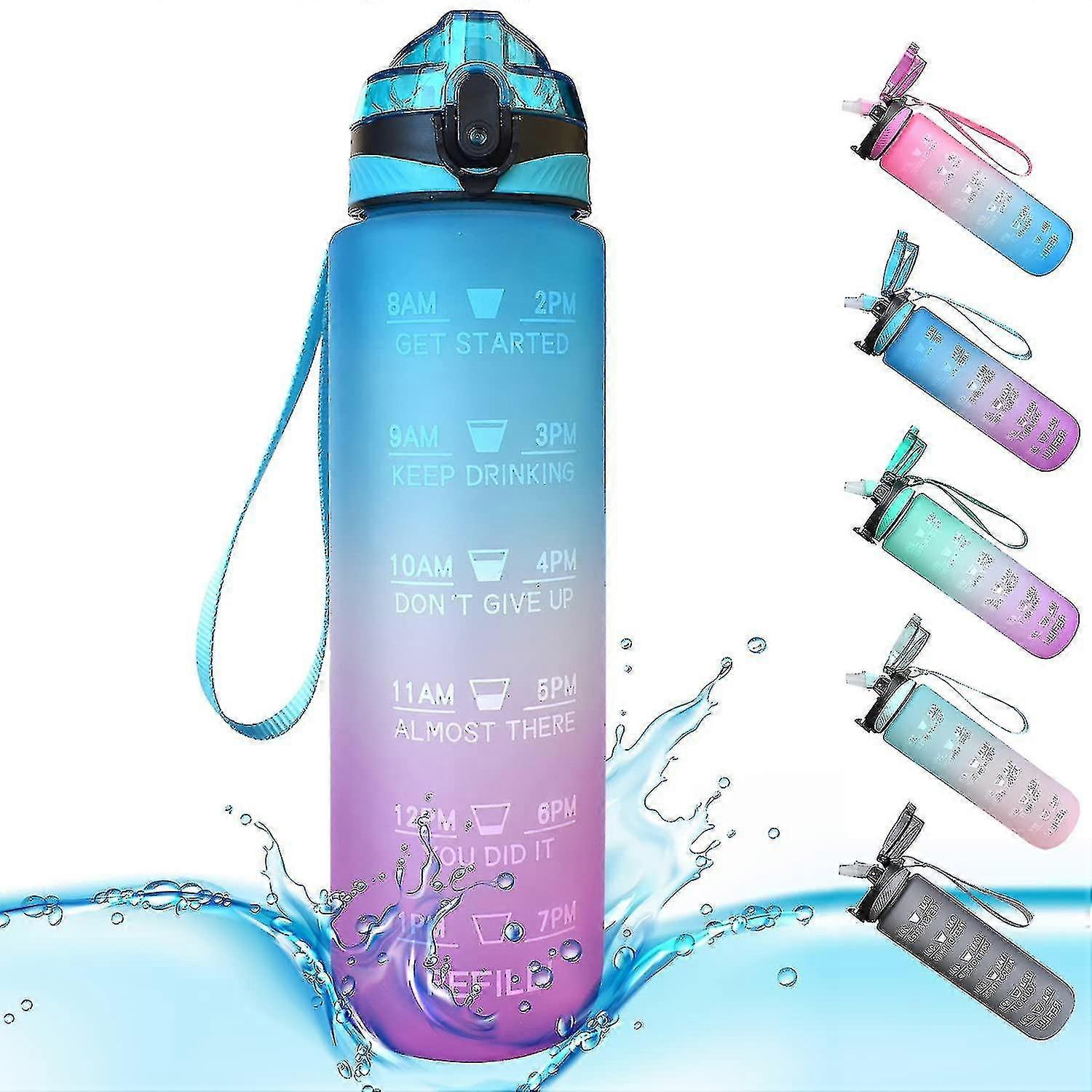 Sports Water Bottle 1 Litre Time Markings And With Straws Bottles Water Bottle Opens Suitable For Fitness Outdoor