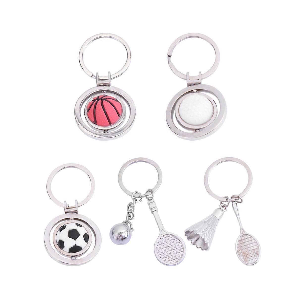Sports Key Chain Zinc Alloy Keyring Pendant with Sports Ball Shape for Daily Use 7x3.5cm Assorted Color 5Pcs