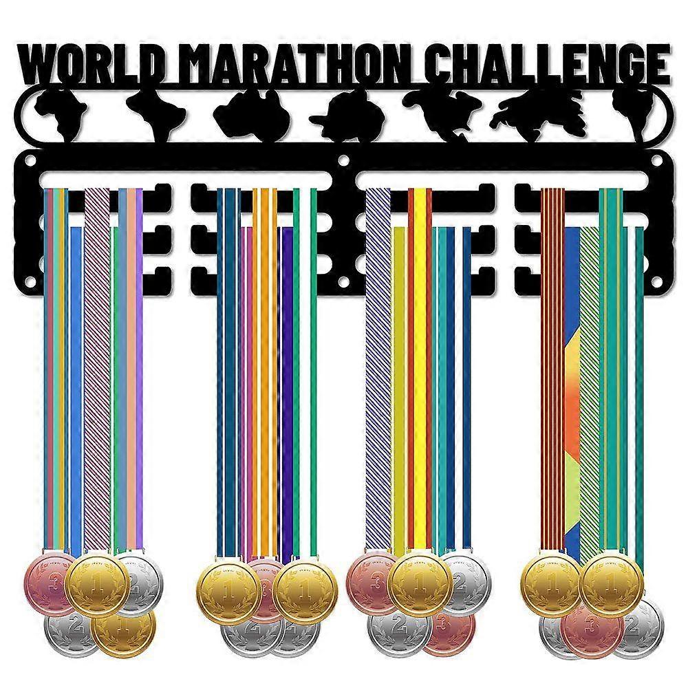 Sports Theme Iron Medal Hanger Holder Display Wall Rack 3-Line with Screws World Marathon Chanllenge Sports 110x290mm Hole: 5mm