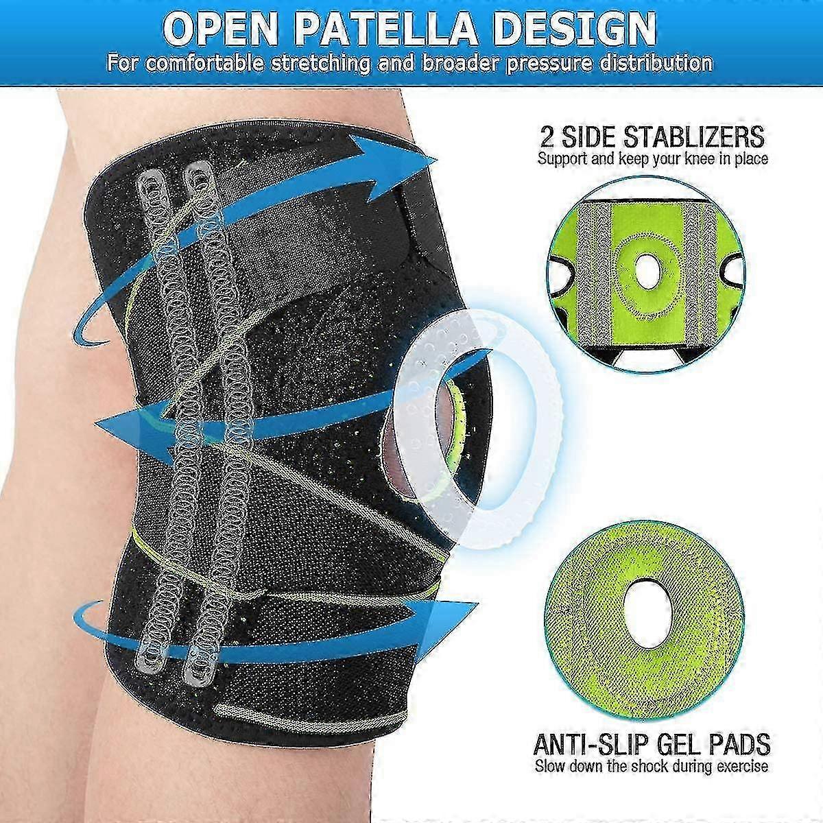 About this item Professional Design Multiple Protection-double anti-skid silicone, double the compression and rebound effect, protect the patella, prevent strain and sprain. Two side stabilizers support and stabilize the injured knee in professional sports activities. Reduce muscle stiffness and pain, and restore vitality from arthritis, osteoporosis, tendonitis and other Uncomfortable. Optimal Sports Protective Knee Support-suitable for all sports, high-quality support with non-slip design, can be used on the left or right knee, bringing ultimate comfort and support, suitable for all sports, including fitness, running, mountaineering, basketball, Wait. Unisex. Open PAT Bone Design-fix the knee supports in place, elastic spring string support silicone pad effectively relieve knee supports for joint pain, Extraordinary comfort reduces stress while reducing knee fatigue during intense exercise. Adjustable breathable-The elastic bandage can be adjusted for long-lasting support and knee supports for joint pain men. The tightness can be adjusted according to your own choice and always in the correct position. The magic paste is not easy to slip off, the moisture-proof design is easier to wear, durable, and the skin-friendly breathable material wit fluff can be kept dry and comfortable even if it is used for a long time.