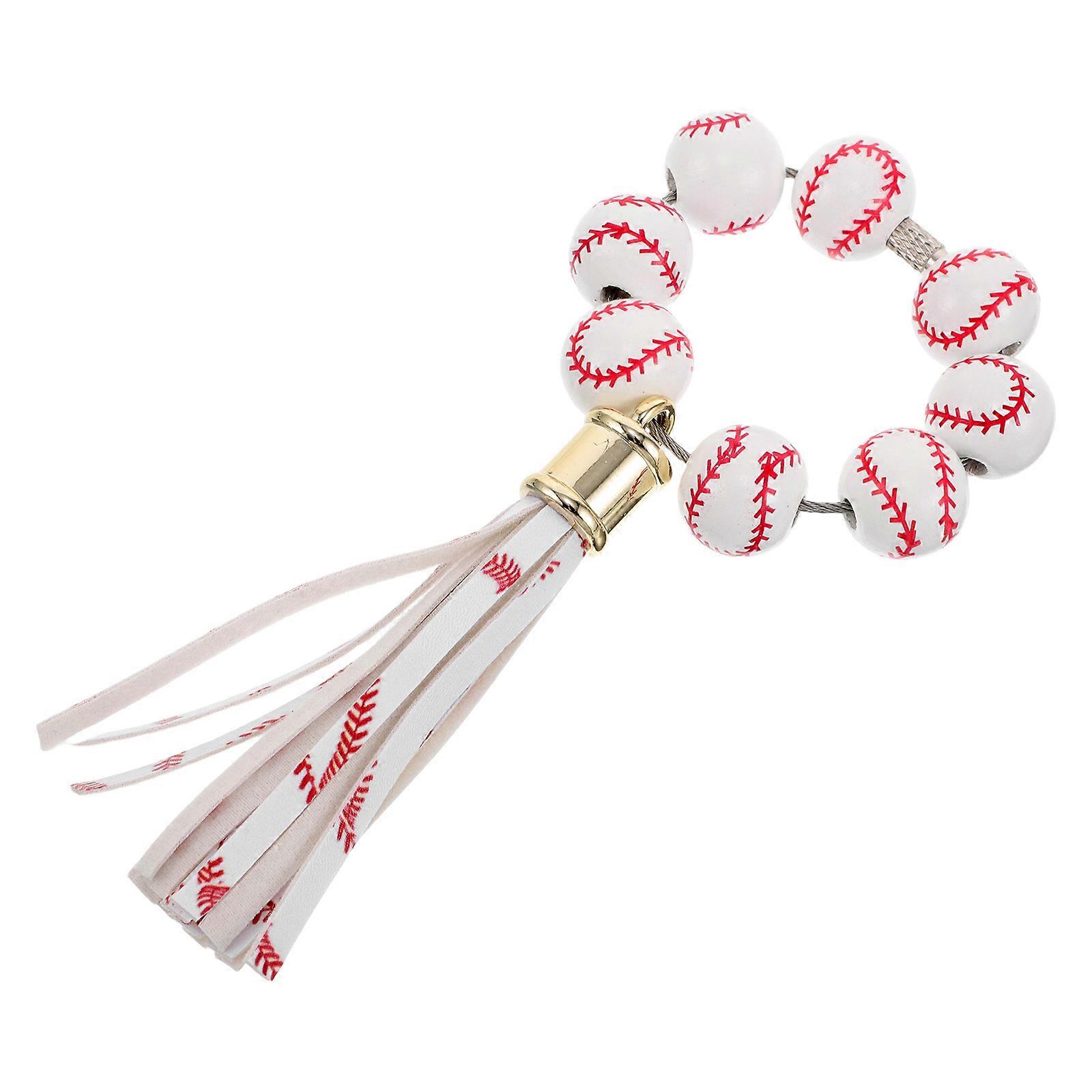 Sports Baseball Wooden Keychain for Bags 5Pcs Handmade Beaded Key Ring