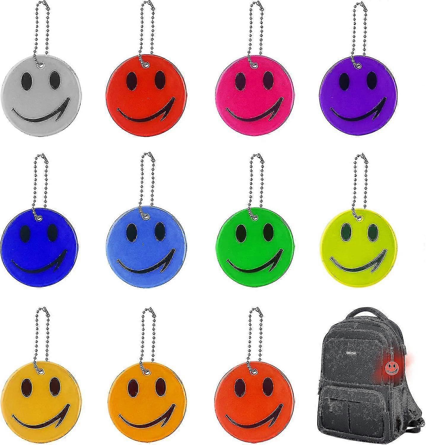 Set Of 11 Smiley Reflective Pendants, Safety Reflector, Children's Reflector, Safety Reflector, For School Bag, Clothing, Backpack, Cycling, Walking,-