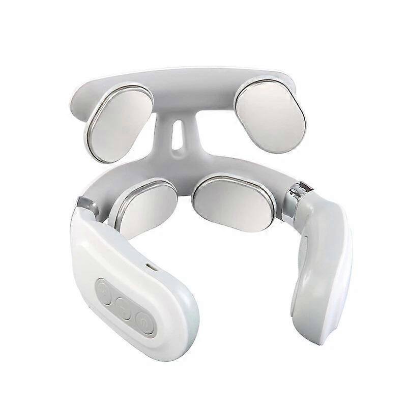 • 4-Head Design :The 4-head design of this cervical massager ensures a broader coverage area, providing more effective neck care and relaxation. • Strength Adjustment :This massager features an adjustable strength setting, allowing you to customize the intensity of the massage according to your preference and need. • USB Charging :Equipped with USB charging functionality, this massager can be conveniently powered up using any USB device such as a laptop or power bank. • Intelligent Voice Heating :The massager comes with an intelligent voice heating feature, automatically adjusting the temperature based on the user's needs for optimal comfort. • Neck Care :Specifically designed for neck care, this massager helps to alleviate tension and discomfort in the cervical region, promoting overall wellness. • White Color :The massager's sleek white color adds a touch of elegance and sophistication to any room or setting. Product Description: Name: Cervical Massage Device Color: White Massage head: 4 Power supply mode: charging type Rated voltage: 3.7V Rated power: 3W Timing: 15 minutes Product size: 14*14.5*8CM Packaging size: 21.5*6.5*10cm Feature: 1.304 stainless steel electrode plate Delicate and non allergic touch sensation 2. One click switch, hassle free and effortless Easy to operate, convenient for all family members to use with confidence 3. Multiple mode combinations Experience more massage fun 4. Upgrade 4 heads and synchronize massage