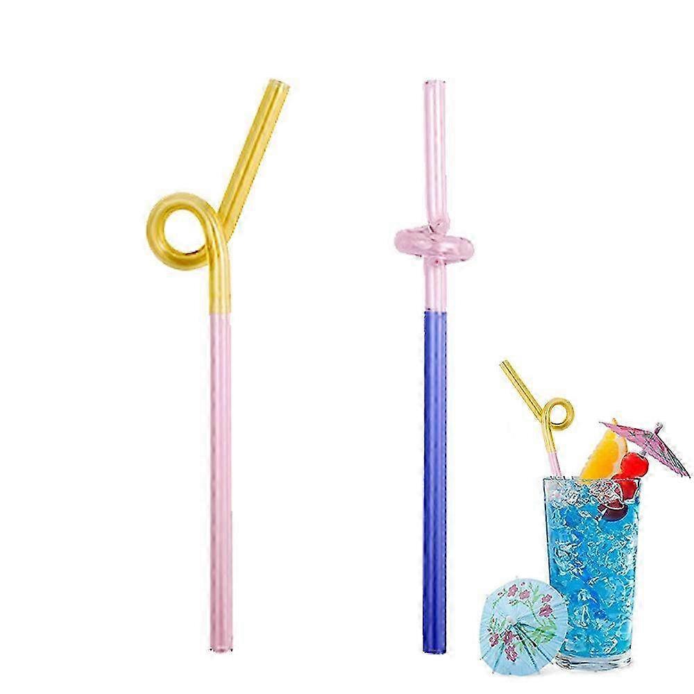 Reusable Bent Glass Straws for Smoothies, Drinks, Milkshakes & Juices - Multicolor 2-Pack Eco-Friendly Straws