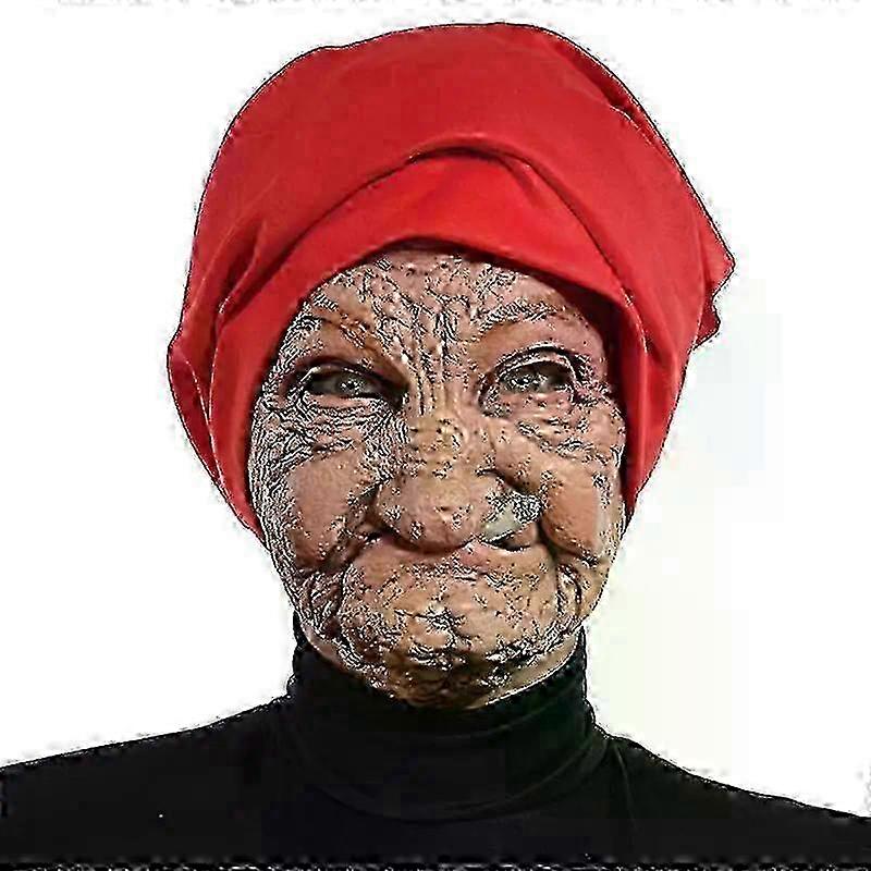 Smoke Grandma Realistic Old Women Face Mask Halloween Horrible Latex Mask Scary Full Head Creepy Wrinkle Face Cosplay Props