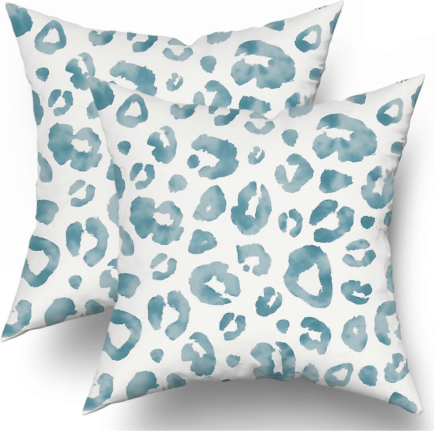 Smoke Blue Leopard Print Pillow Covers 16X16 Inch Blue Grey Gray Watercolor Cheetah Decorative Pillow Cases Animal Throw Pillow Case Set of 2 Home Dec