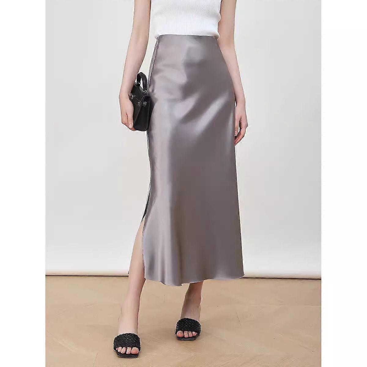 Slit Slit Acetic Elastic Waist Shiny Spring And Summer Women's Skirt Acetic Acid Cross-Section Mid-Length A-Line Skirt