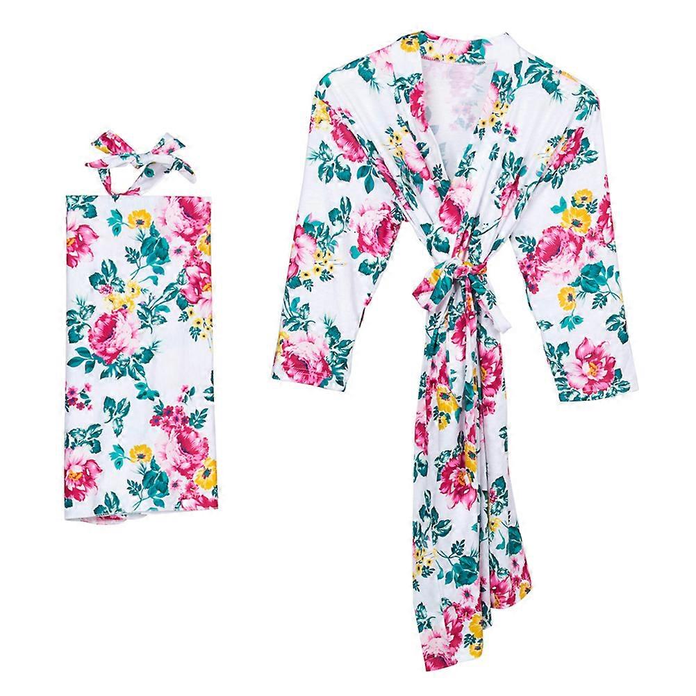 Sleeping Gown Maternity Nursing Nightgown Parent-Child Set Postpartum Care Soft And Smooth 3Pcs