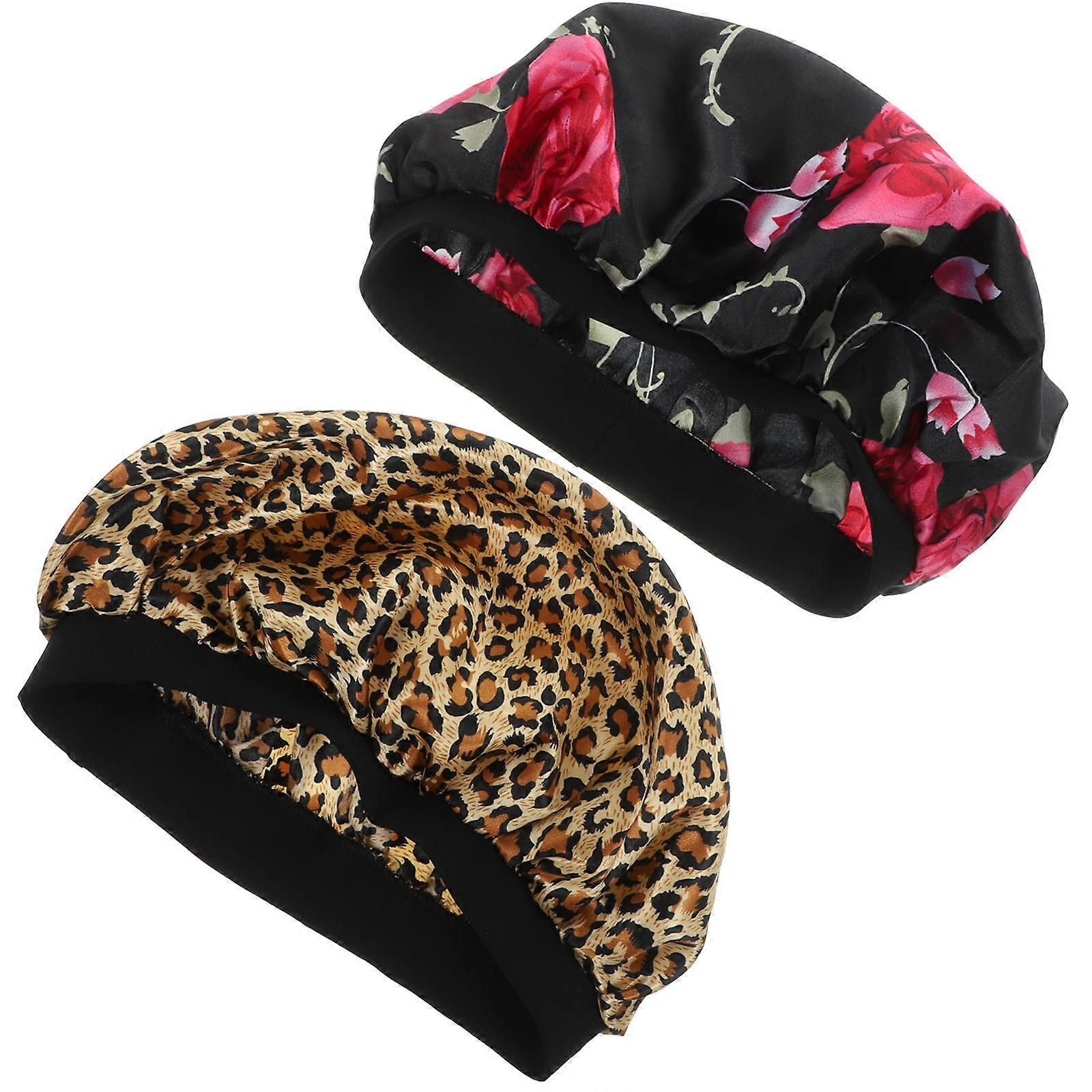 Satin Bonnet for Sleeping Elastic Wide Brim Bonnets 2Pcs for Women