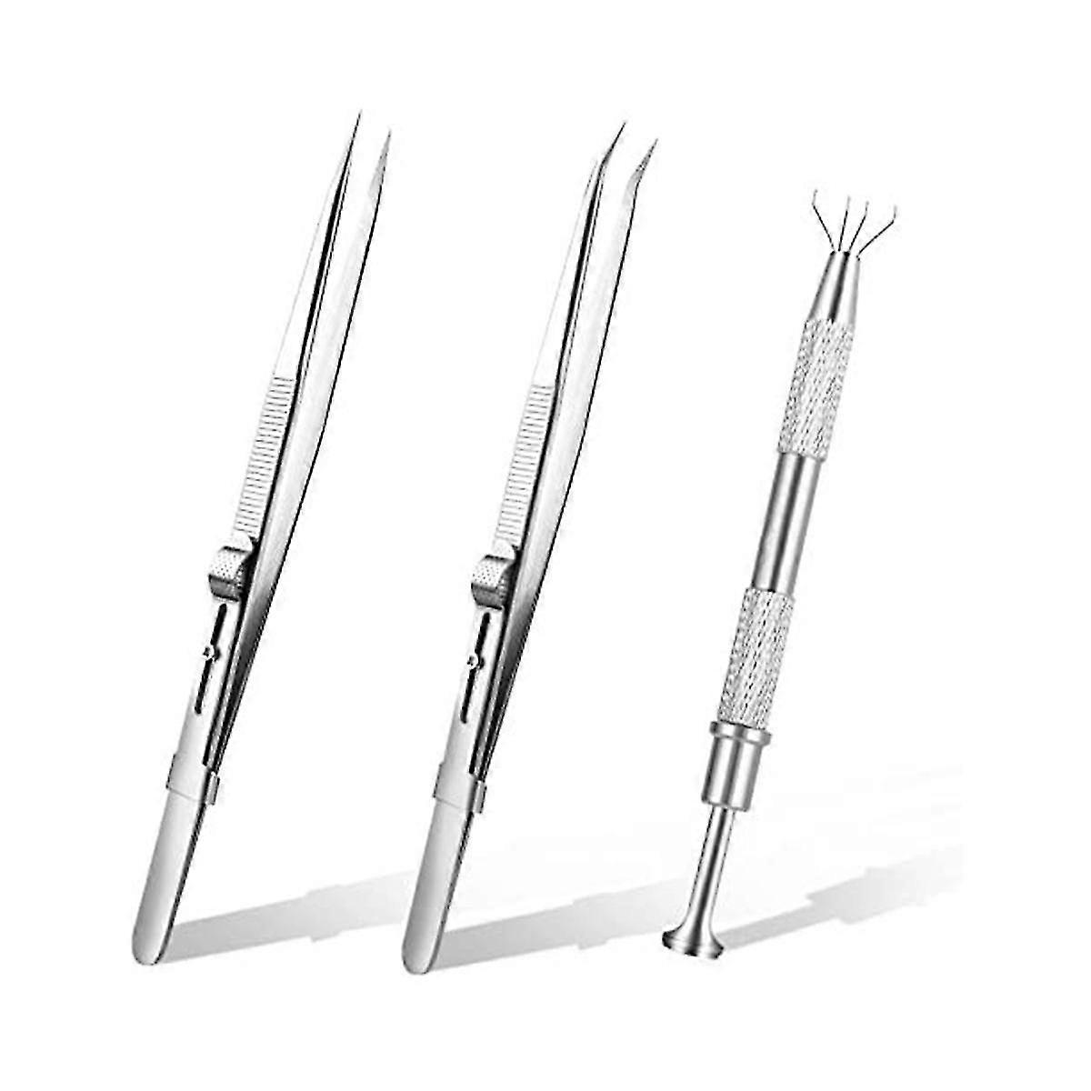 3pcs Diamond Jewelry Tweezers With Slot Clamping Jewelry Tools Multi-purpose Tweezers