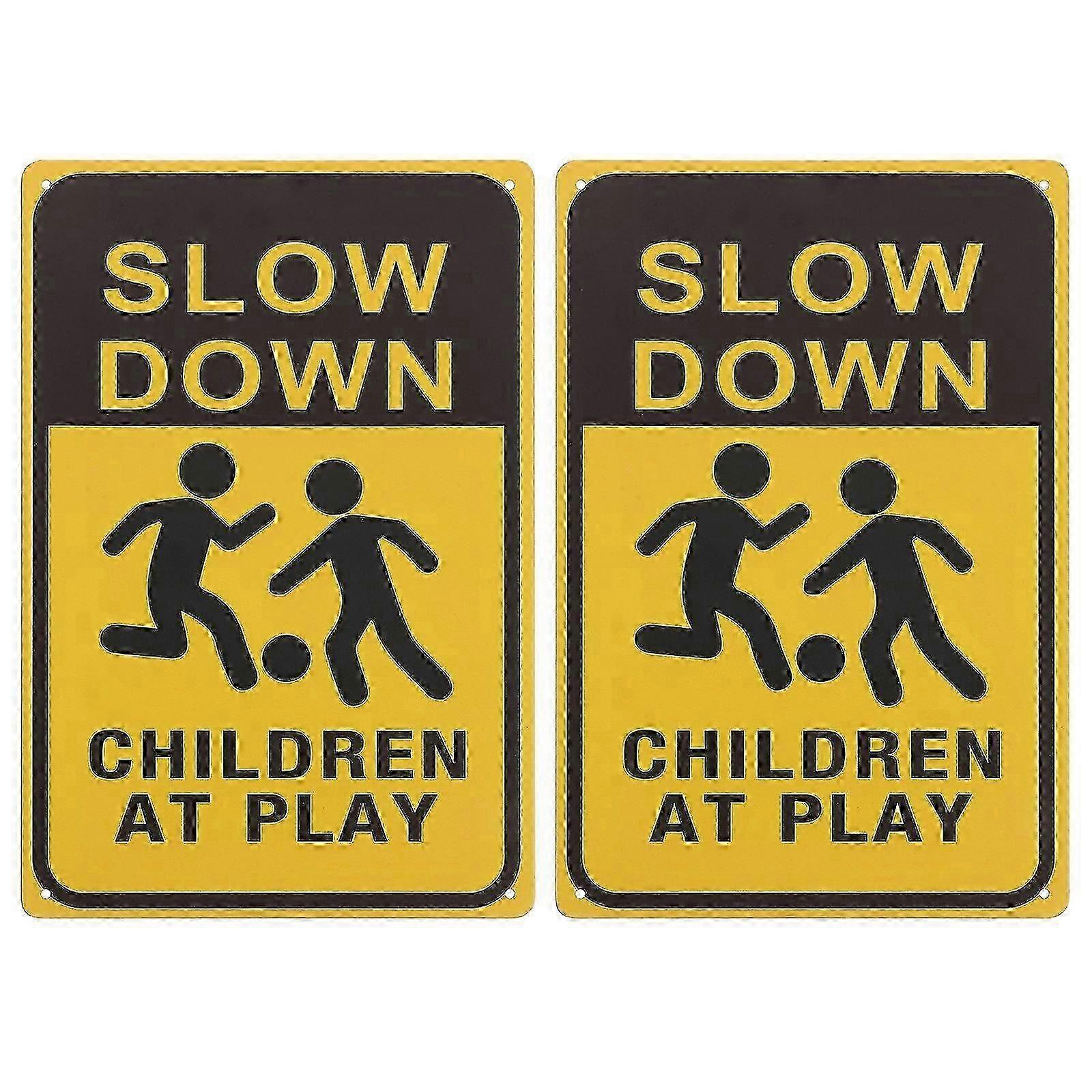Slow Down Sign 2pcs Children At Play Sign Kids At Play Yard Sign Child Safety Caution Signs Warning Sign For Street Lawn Neighborhoods