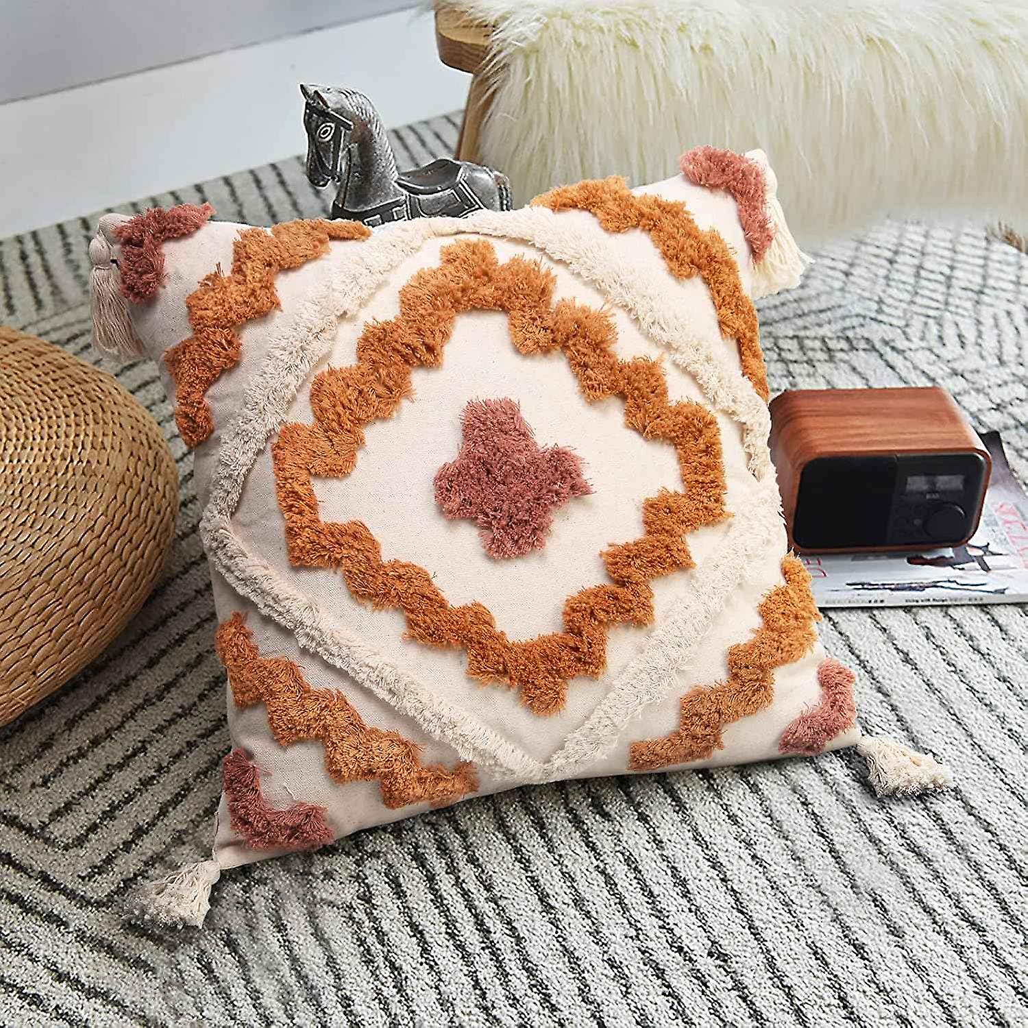 Throw Pillow Covers Decorative Woven Tufted Diamond Pattern Pillow Cases Farmhouse Pillowcase for Co
