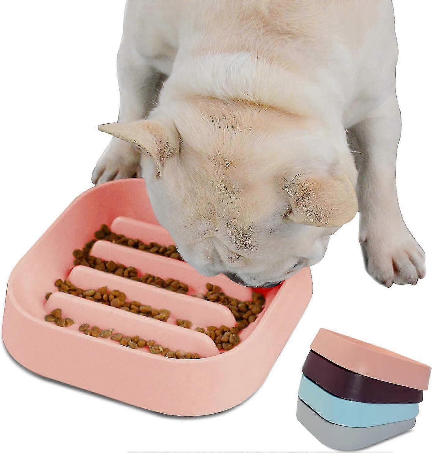 Slow Food Dog Bowl French Bulldog - funny dog and cat bowl - no choking animal Slow Food Stripe Bowl (Pink)