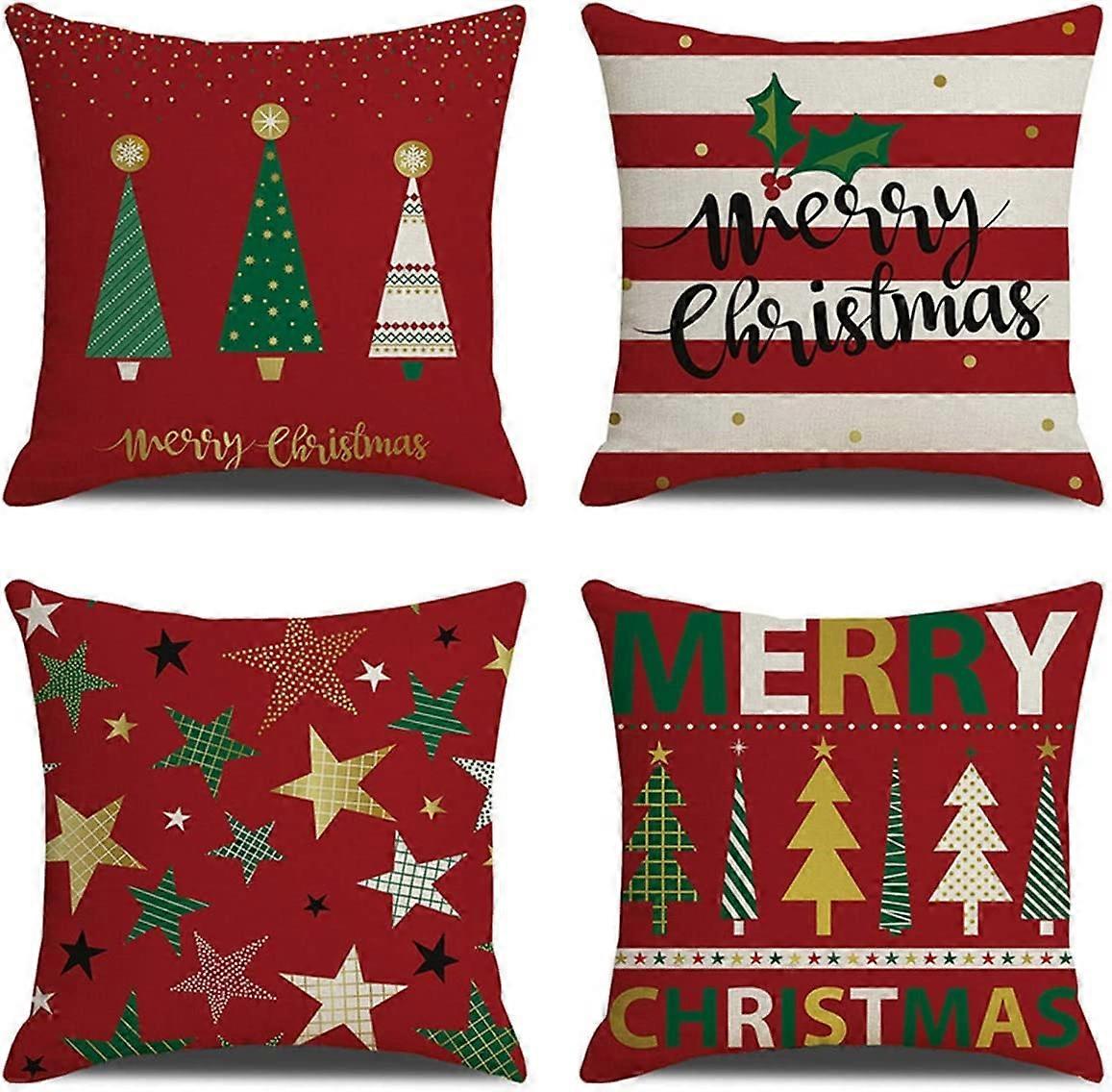 Throw Pillow Covers Set of 4, Summer Decorative Couch Cotton LinenPillow Cases Square Cushion Covers for Living Room, Bed, Sofa and Car (Farmhouse,18x