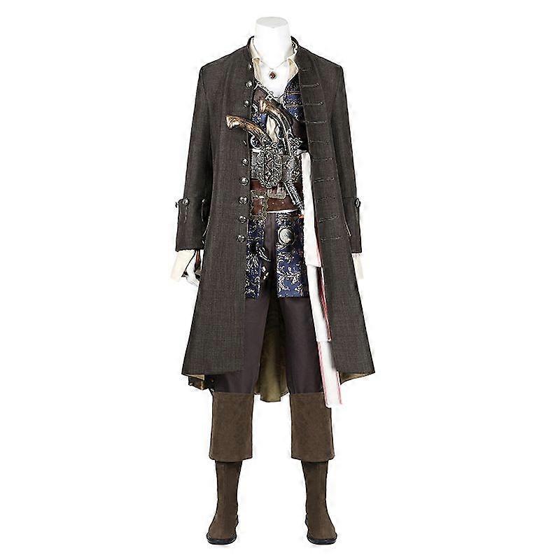 Swashbuckler Pirate Captain Costume Vintage Coat, Shirt, Vest, Belts and Full Accessories Set | Sizes XS to XXXL