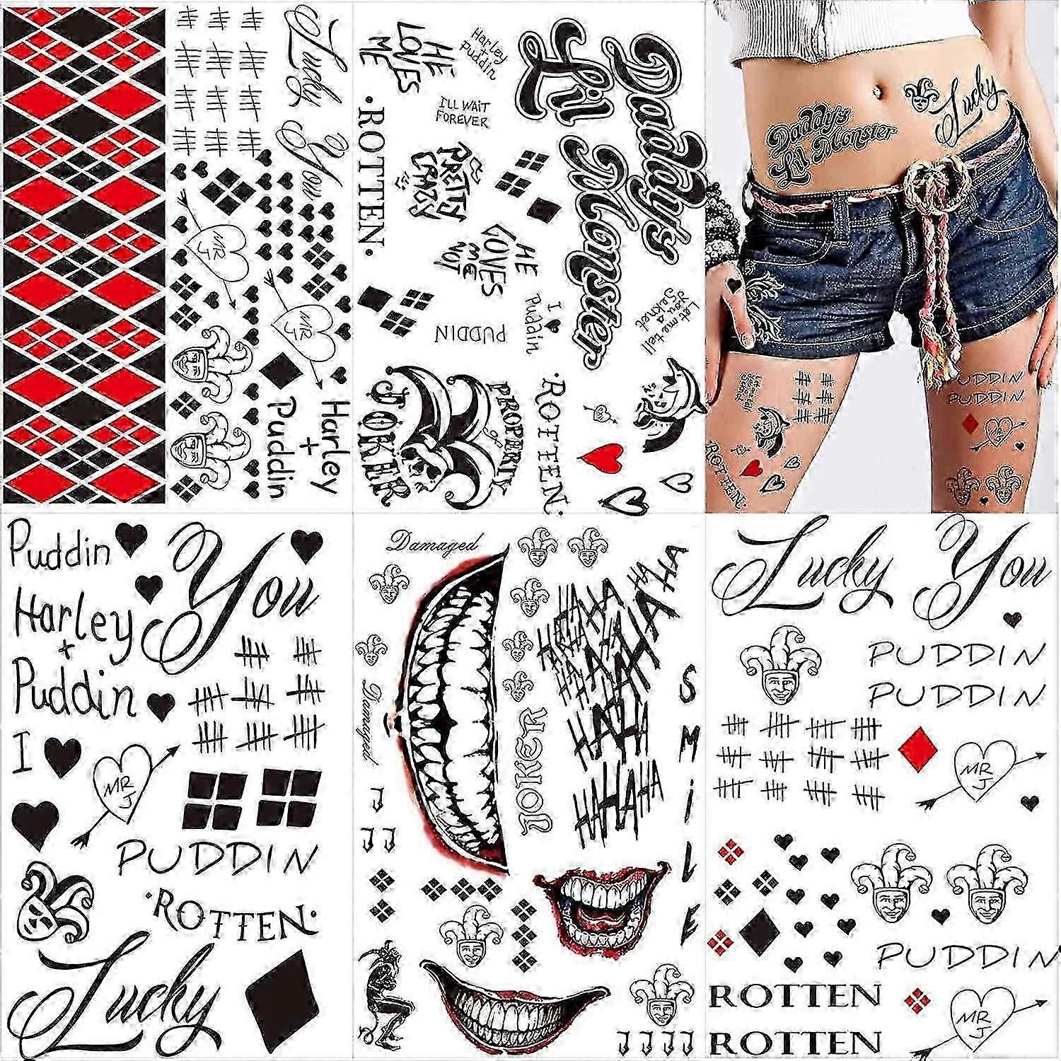 Large-size Tattoos For Suicide Squad Joker Harley Quinn, 5 Sheets Temporary Tattoos Stickers For Har