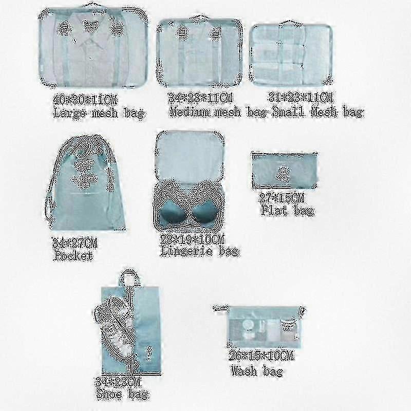 8-Piece Set of Travel Organizers for Suitcase Packing and Storage