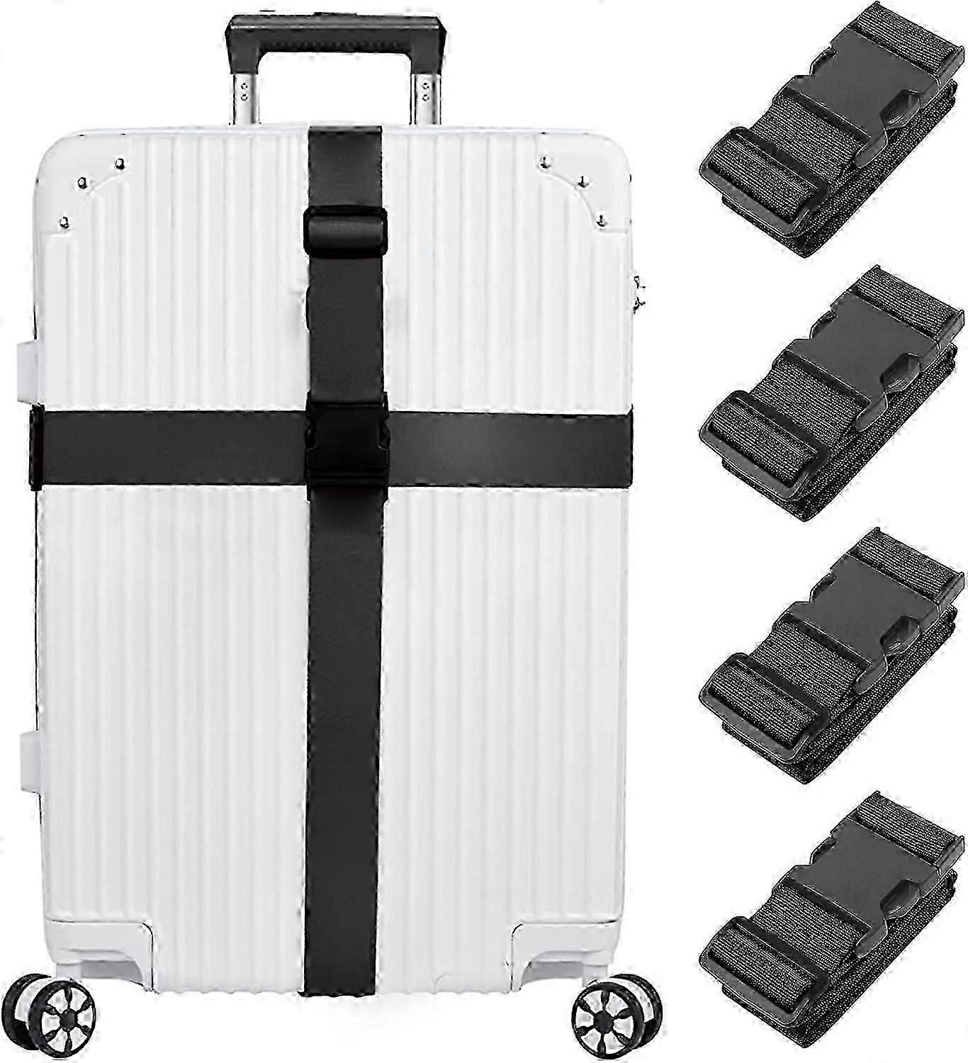 Black Luggage Straps for Suitcase 4 Pack, Heavy Duty Adjustable Suitcase Straps with Buckle for Travel Case, 3.8x200CM