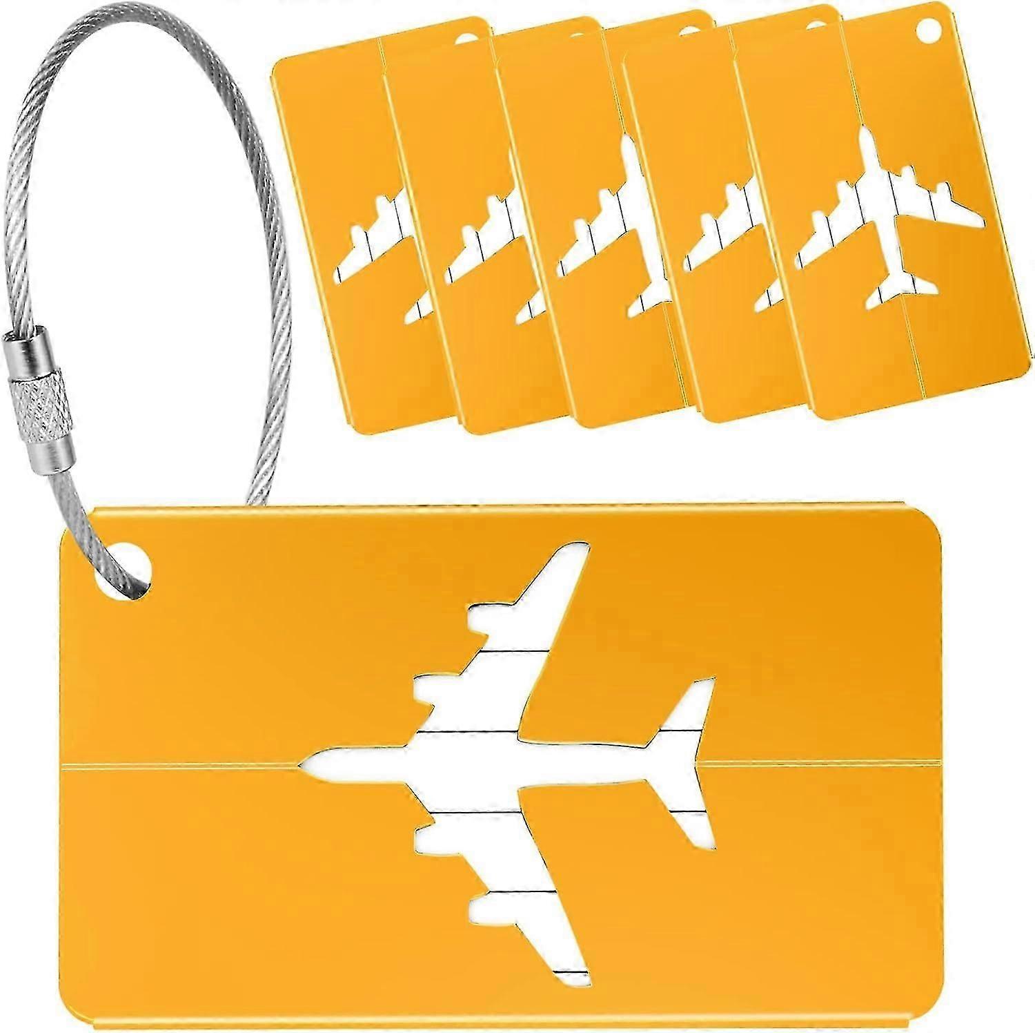 Luggage Tags for Suitcases, 6 Pack Luggage Labels Aluminium Alloy Suitcase Tags with Steel Loop for Travel Baggage Identity ID Labels (Gold)