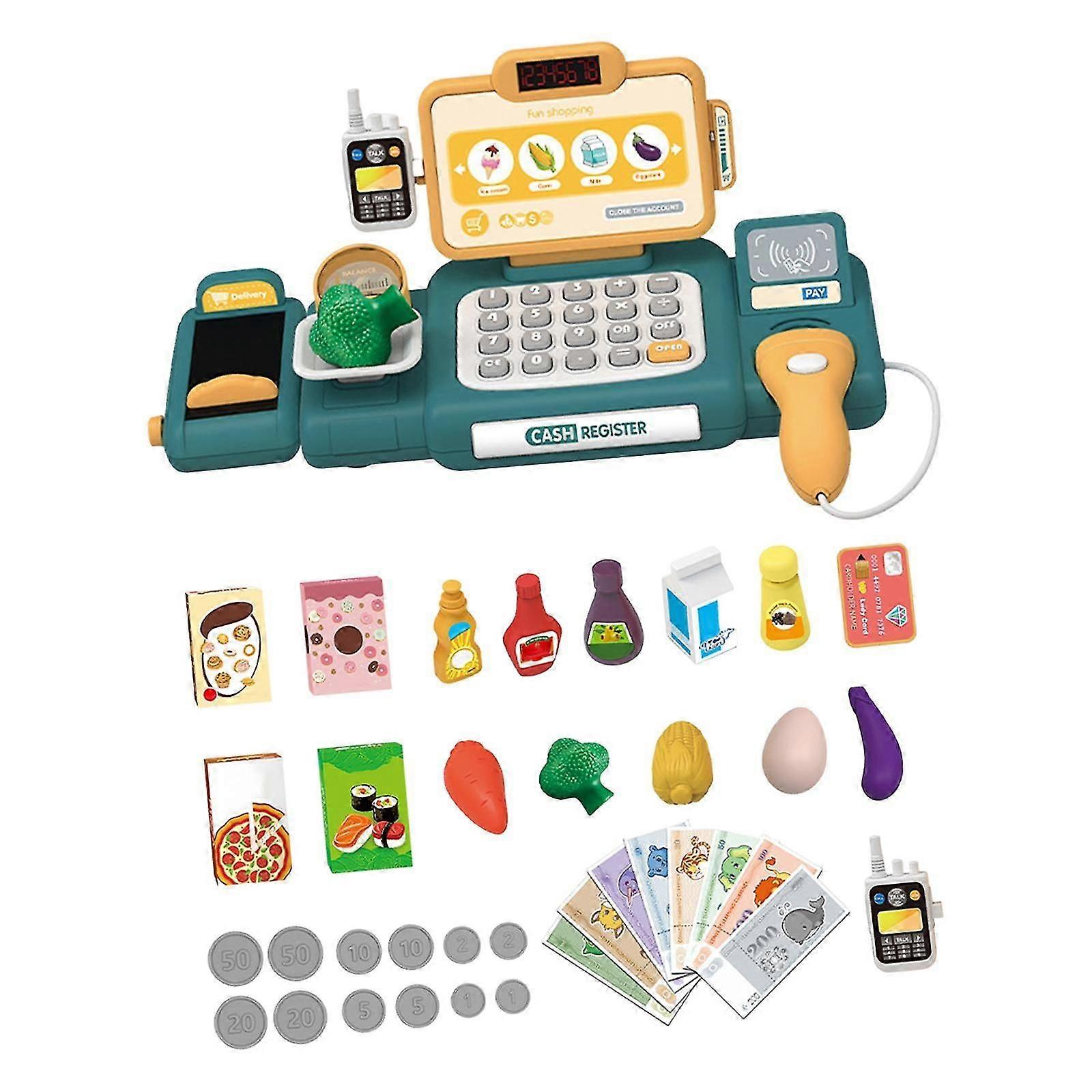 Supermarket Cash Register Toy - Play Store Set for Kids Aged 3-7 in Green