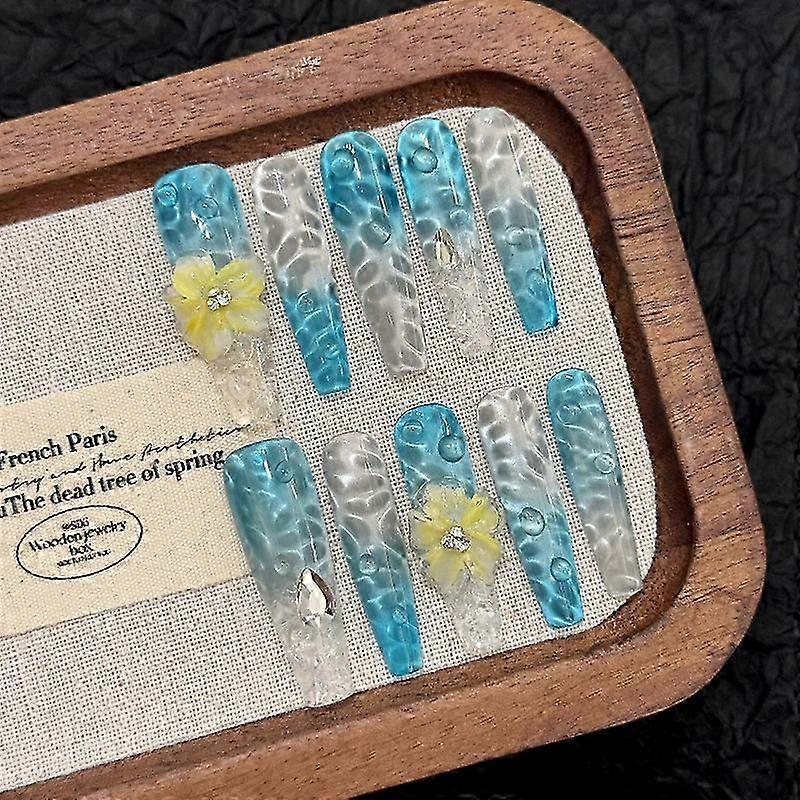 Super Long Stiletto False Nail Tips Light Luxury Handmade Full Flash Diamond Press On Nails European Wearable Fake Nails