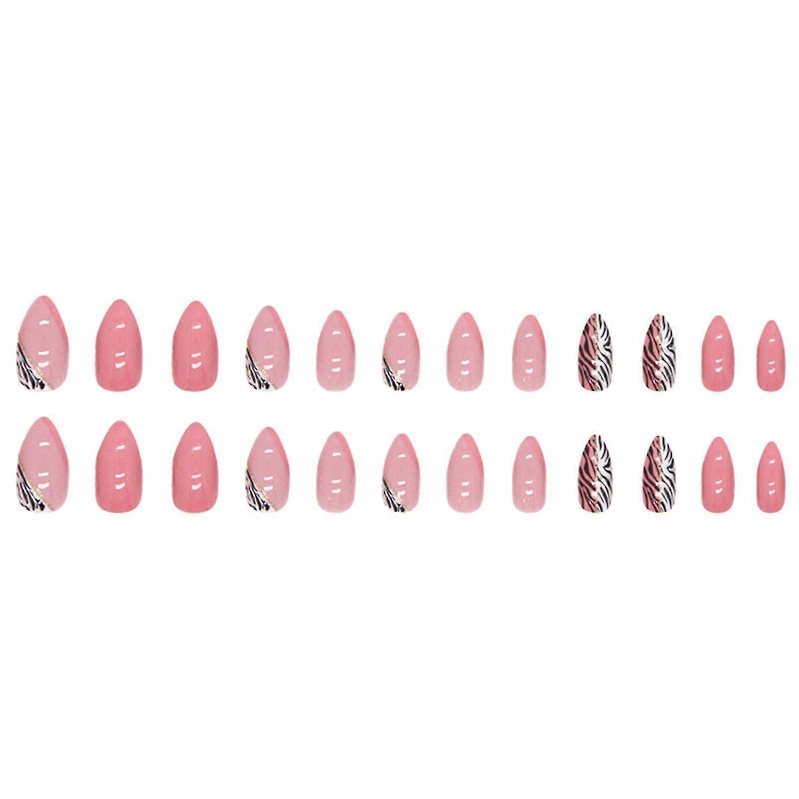 Zebra Stripes Almond Press-on Nail Chip-proof Polish-free Durable Wear Nail
