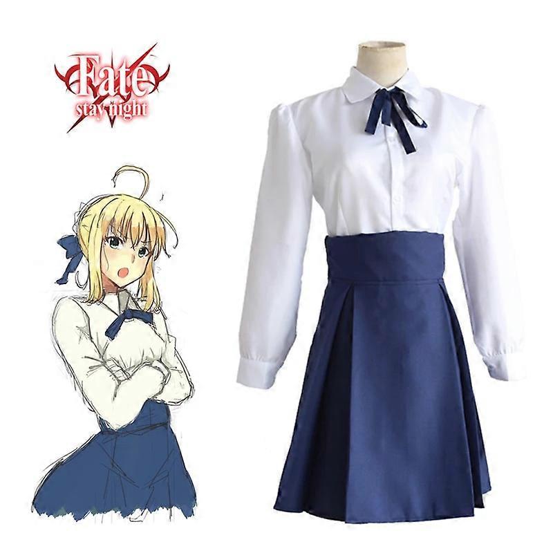 Saber Suit Cosplay Fate Stay Night Costume Top And Skirt Japanese Anime Halloween White And Blue Costume