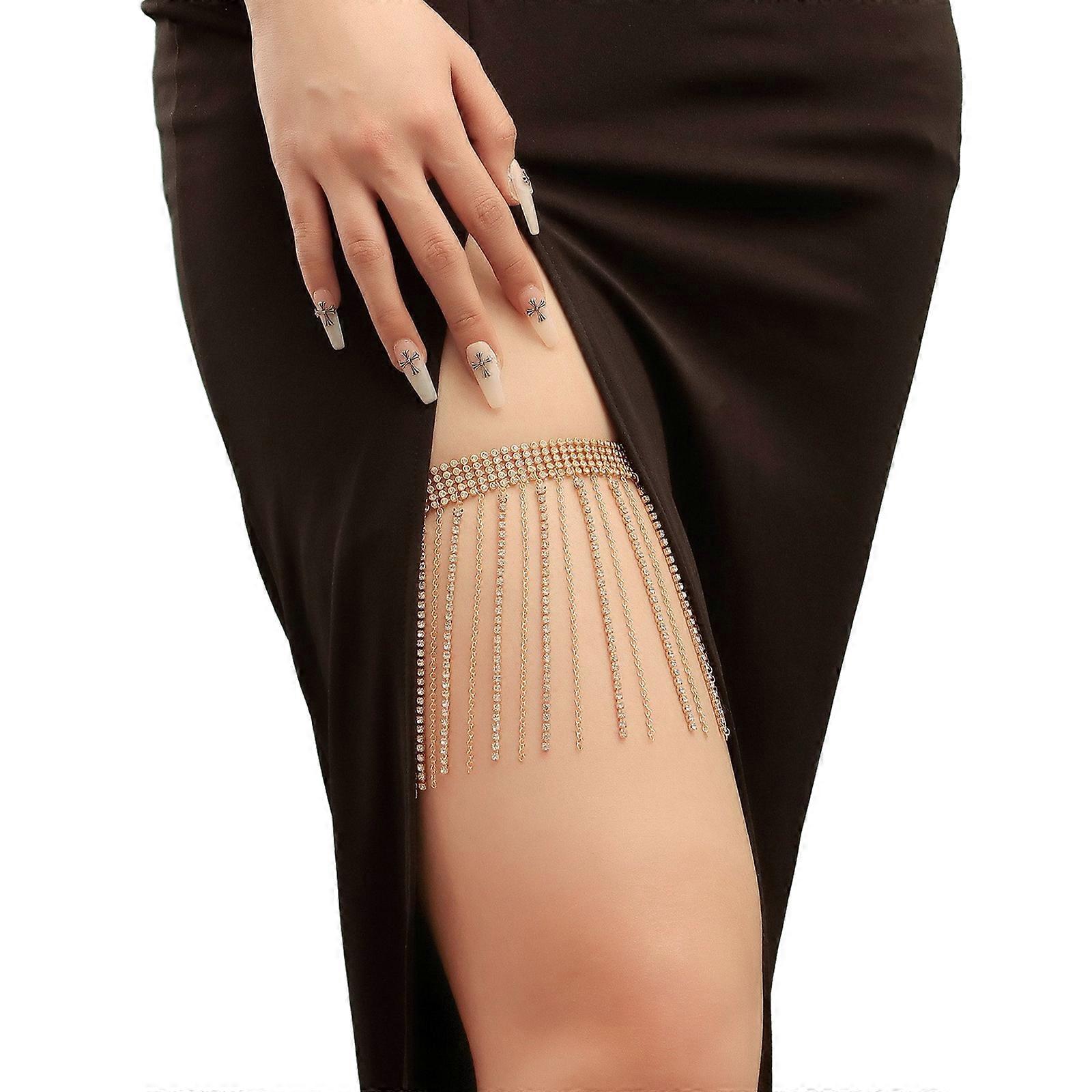 Sexy Pearl Beads Thigh Chain Hot Girls Elastic Leg Body Chain Fashion Seaside Nightclub Party Dancer Singers Supplies