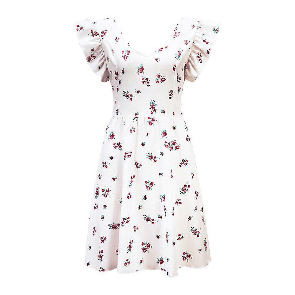 Sexy Mini Sundress V-Neck Sewing Dress Boho Floral Skirts Frocks Ruffle Holiday