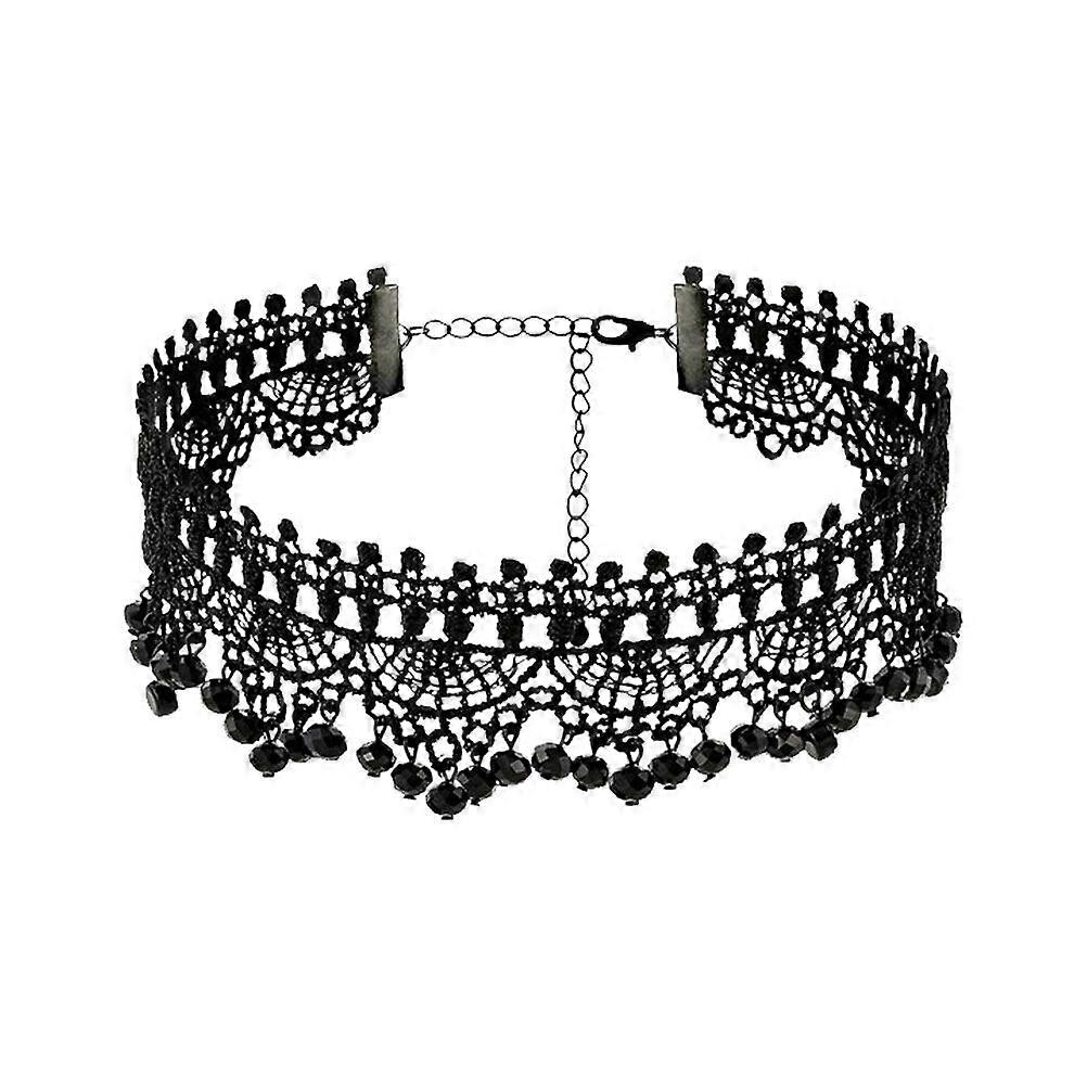 Sexy Lace Necklet Exquisite Clavicle Chain Beautiful Necklace Vintage Crystal Beads Pendant Choker for Woman (Black)
