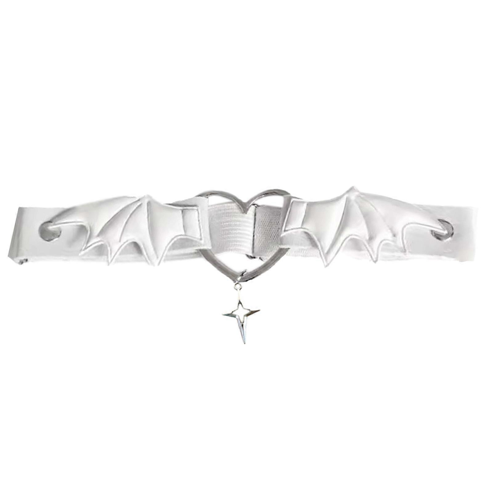 Sexy Thigh Chain Gothic Heart Wing Leg Garter for Trendy Female Fashion Black Leg Strap with Heart Wing for Themed Party cross star white