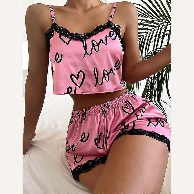 Sexy Floral Pajama Set Women's 2 Pieces Sleepwear Pyjamas Silk Satin Cami Top And Shorts Pajamas Summer Pajamas Set For Women