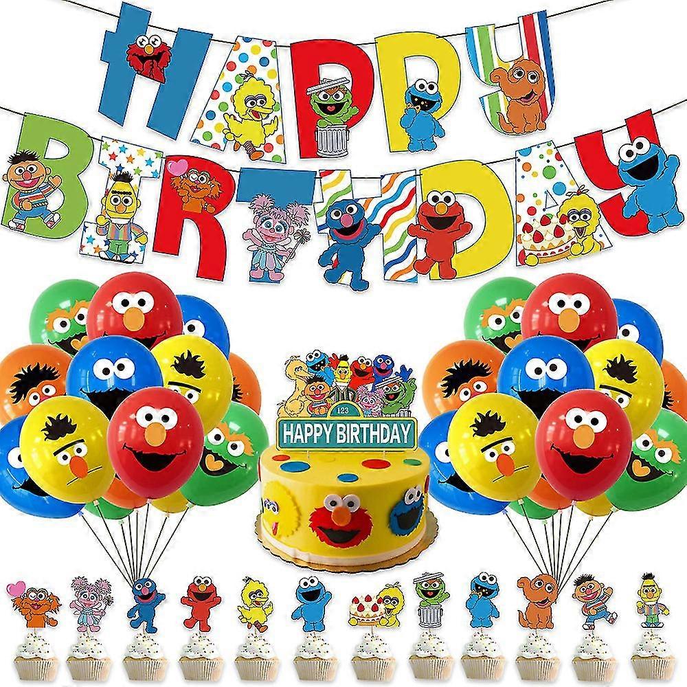 Sesame Street Themed Birthday Party Decorations Paper Banner Pull Flag Cake Insert Card Balloon Set